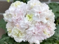 Сорт образует достаточно много цветоносов. Зацветает и под хорошими лампами. В начале роспуска цветки имеют выраженную зеленцу, затем ванильный оттенок, и в роспуске — белый. В полуроспуске очень похожи на цветок гардении. Лепестки плотные. Самое эффектное цветение будет в прохладное время, весной-осенью, тогда сорт образует не слишком набитное соцветие, порядка 20-ти цветков, но они крупные (5 см) и красиво укладываются. Могут достаточно долго простоять в срезке. Летом количество цветков в соцветии сильно увеличивается, до 40-50, поэтому размер и махровость цветка заметно снижается, но соцветия превращаются в пушистый белый шар 13-14 см в диаметре. Цветоносы средней длины, крепкие, но при вытягивании, особенно при недостатке света, может потребоваться подвязка.